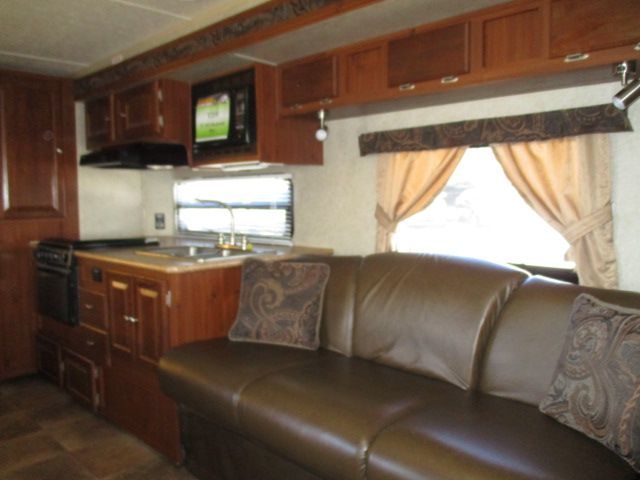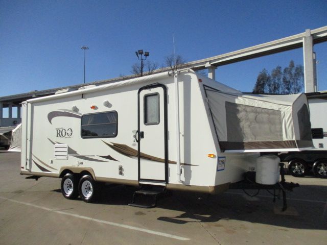 This 2012 Rockwood Roo is perfect for family get aways. It's Features include....1 Slide-out, 1 Non-Ducted Air Conditioner, Double Door Gas/110V Refrigerator, Main Awning, TV, Outside Shower, Microwave, 3 Burner Range and Oven. Enjoy camping with this comfortable Roo.