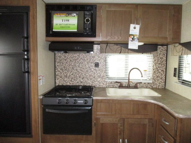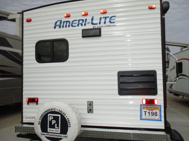 Brand New ! This 2017 Gulf Stream Ameri-Lite has rear kitchen floor plan and plenty of storage. Comforts include....Electric Tongue Jack, 1 Slide-out, 1 Non-Ducted Air Conditioner, Double Door Gas/110V Refrigerator, Automatic Main Awning, CD Radio, Outside Speakers, Outside Shower, Microwave, 3 Burner Range and Oven. It's time to get away.