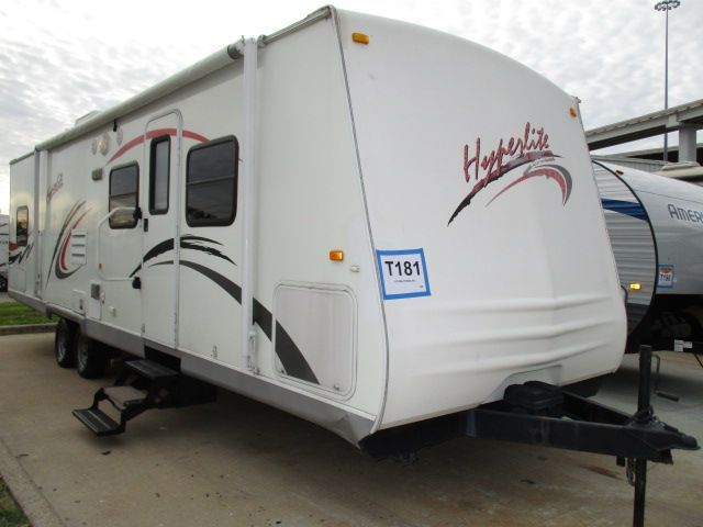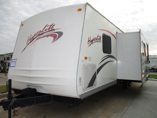 This 2009 Hyperlite has a 1 Slide-out, 1 Ducted Air Conditioner, Double Door Gas/110V Refrigerator, Main Awning, CD Radio, Outside Speakers, DVD Player, Outside Shower, Microwave, 3 Burner Range and Oven. Get out into the great outdoors by going CAMPing.