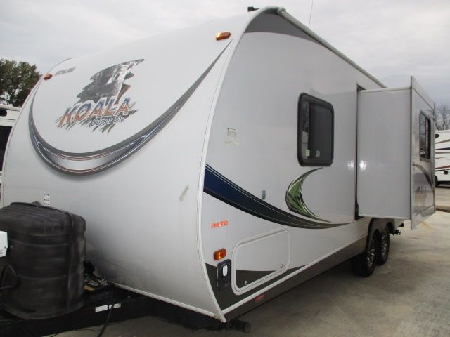 This 2013 Koala has an Electric Tongue Jack, 1 Slide-out, 1 Ducted Air Conditioner, Double Door Gas/110V Dometic Refrigerator, Automatic Main Awning, CD Radio, Outside Stereo, DVD Player, Outside Shower, Microwave, 3 Burner Range, Oven and new tires. Perfect for those weekend getaways and for those summer vacations also. Let's go RVing!