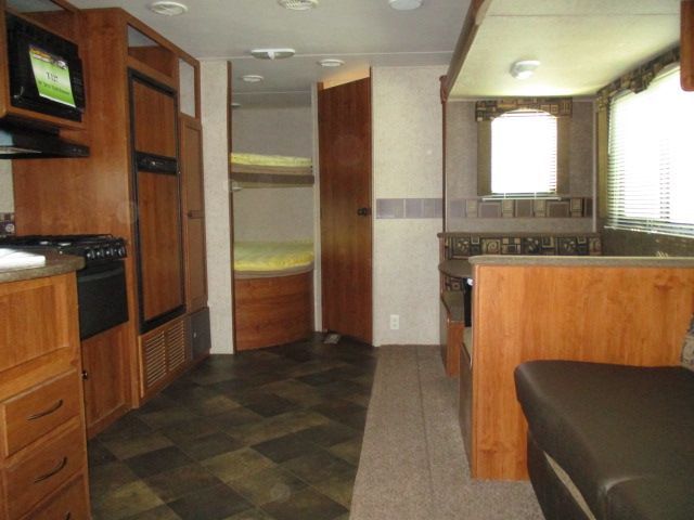 This Nearly New 2014 Trail Runner has Double Size Bunk Beds adding to everyone's comfort. It's Options include....1 Slide-out, 1 Non-Ducted Air Conditioner, Double Door Gas/110V Norcold Refrigerator, Automatic Main Awning, CD Radio, Outside Shower and Speakers, DVD Player, Microwave, 3 Burner Range and Oven. Enjoy freetime with family and friends at your favorite campgrounds.