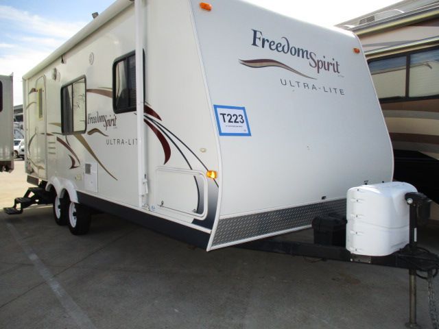 This 2010 Freedom Spirit has been well maintained and is a nice light weight CAMPer for all of your travels. Options include....Electric Tongue Jack, 1 Slide-out, 1 Ducted Air Conditioner, Double Door Gas/110V Refrigerator, Main Awning, CD Radio, Outside Speakers, DVD Player, Outside Shower, Microwave, 3 Burner Range and Oven. Hit the road to your favorite spot.