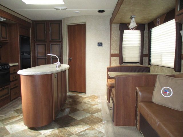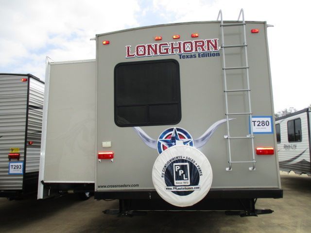 Texas Edition, This 2014 Longhorn By Crossroads has the popular rear bunkhouse floor plan with plenty of room for the kids or guest. Comforts include....3 Slide-outs, 1 Non-Ducted Air Conditioner, Double Door Gas/110V Refrigerator, Main Awning, Outside Shower and Speakers, DVD Player, Microwave, 3 Burner Range and Island style kitchen for added counter space. Bonus: Outdoor Kitchen