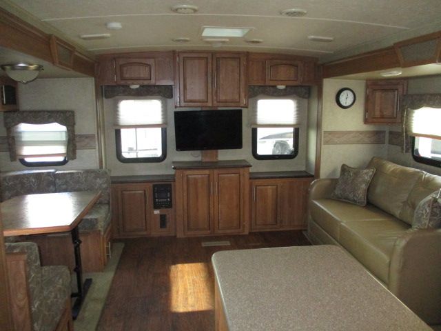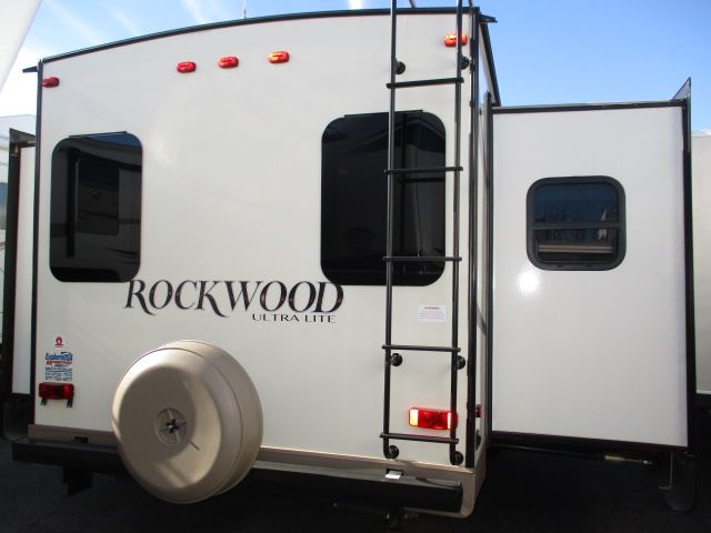 This 2015 Ultra Lite By Rockwood has an Electric Tongue Jack, 3 Slide-outs, 1 Ducted Air Conditioner, Double Door Gas/110V Dometic Refrigerator, Automatic Main Awning, CD Radio, Outside Speakers, 2 TVs, DVD Player, Outside Shower, Microwave, 3 Burner Range, Oven, Great "Home Feeling" RV.