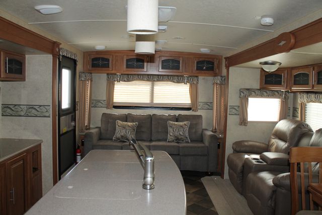 Spacious Interior with Comfortable seating and Sleeping for 4. This well maintained 2013 Flag Staff V-Lite has a wonderful layout for the small family or traveling couple. Features include....Electric Tongue Jack and Stabilizers, 3 Slide-outs, 2 Ducted Air Conditioners, Double Door Gas/110V Refrigerator, Main Awning, CD Radio, Outside Shower and Speakers, TV, DVD Player, Microwave, 3 Burner Range and Oven. Includes the Diamond Package. Head out to your favorite spot with all the comforts of this V-Lite.
