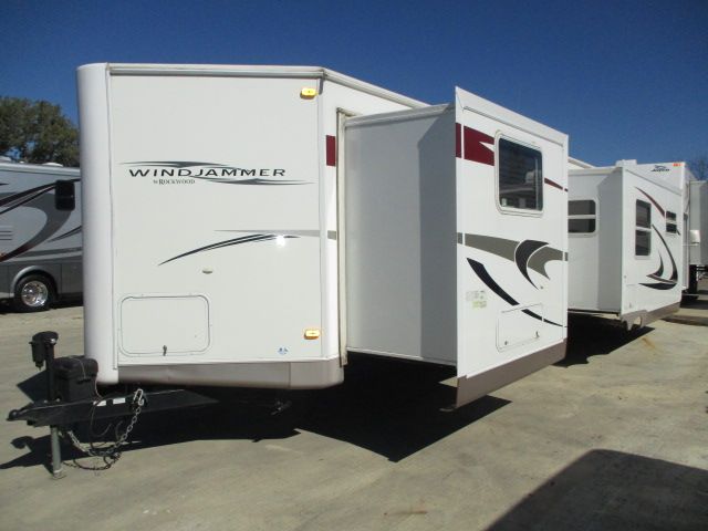 This 2009 Wind Jammer has an Electric Tongue Jack, 2 Slide-outs, 1 Ducted Air Conditioner, Double Door Gas/110V Dometic Refrigerator, Main Awning, CD Radio, Outside Speakers, TV, DVD Player, Outside Shower, Microwave, 3 Burner Range, Oven and ample storage. Enjoy your favorite campgrounds in comfort. Let's go RVing!