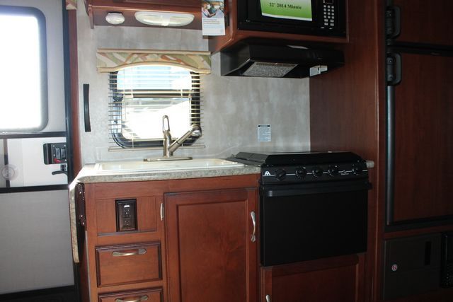This well maintained 2014 Minnie is perfect for weekend getaways or any adventure. Features include....Electric Tongue Jack, Diamond Plated Rock Guard, 1 Slide-out, 1 Ducted Air Conditioner, Double Door Gas/110V Refrigerator, Automatic Main Awning, Queen Size Murphy Bed, Ducted Heated Basement, CD Radio, Outside Shower and Speakers, TV, DVD Player, Microwave, 3 Burner Range and Oven. Outside of Trailer is Prepped for RV - has connection and place to put TV Hanger. Nice Travel Trailer with plenty of comfort.