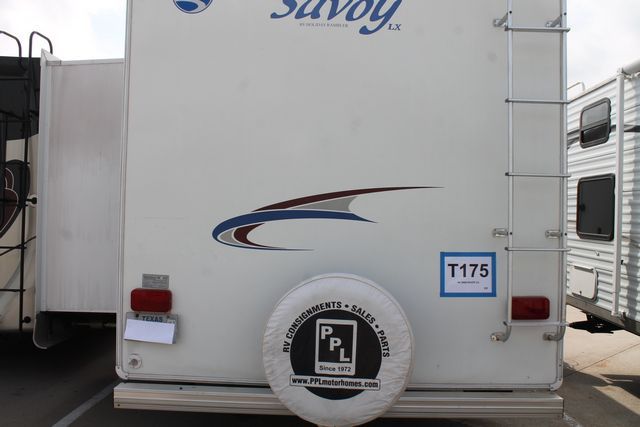 This 2008 Savoy Lx has the popular front kitchen floor plan and private rear Master Suite. Features include....Electric Tongue Jack, 2 Slide-outs, 2 Non-Ducted Air Conditioners, Double Door Gas/110V Refrigerator, Main Awning, 1 Piece Washer/Dryer, CD Radio, 2 TVs, DVD Player, Outside Shower, Microwave, 3 Burner Range and Oven. This Savoy could be your next home.