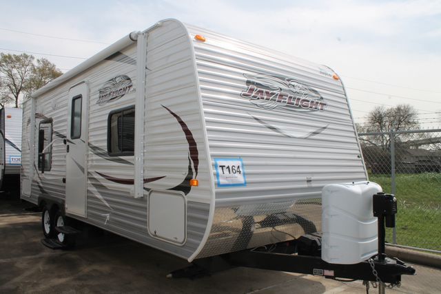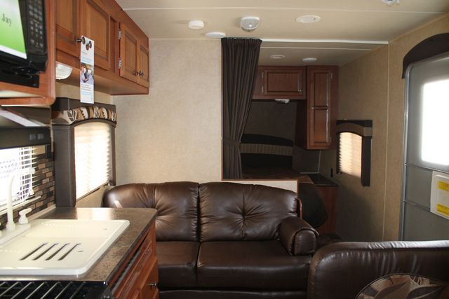 This Well Maintained 2014 Jayco Jay Flight has a nice layout for weekend getaways. It Comforts include....Electric Tongue Jack, 1 Non-Ducted Air Conditioner, Double Door Gas/110V Refrigerator, Main Awning, CD Radio, Outside Shower and Speakers, Microwave, 3 Burner Range and Oven. Go Camping in this Light Weight, 1/2 ton towbale.