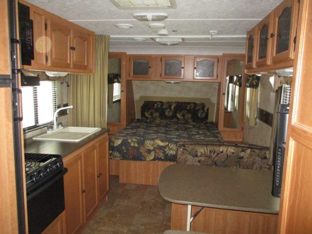 This 2009 Passport has a 1 Non-Ducted Air Conditioner, Double Door Gas/110V Dometic Refrigerator, Main Awning, CD Radio, Outside Speakers, TV, DVD Player, Outside Shower, Microwave, 3 Burner Range, Oven, Slide out Stove on the Exterior, Tinted Glass, Power vents, A Well laid Out Floorplan.