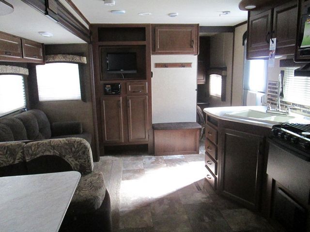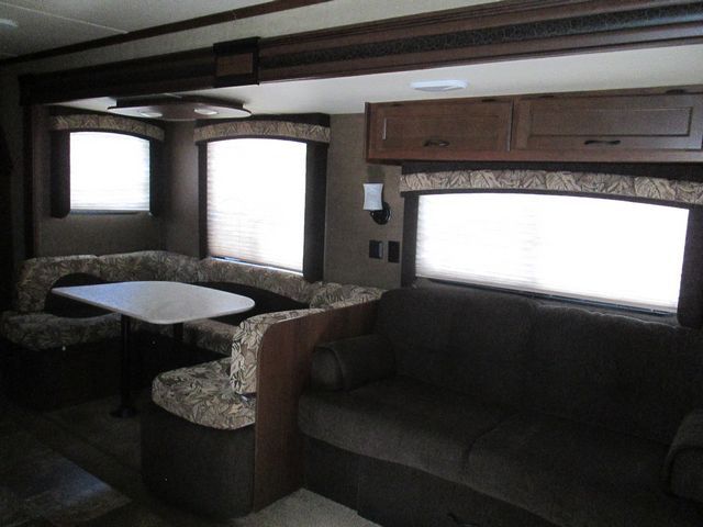 This Nearly New 2014 Jayco Jay Flight has sleeping accommodations for up to 10 and is loaded with Comforts include....1 Slide-out, 1 Ducted Air Conditioner, Double Door Gas/110V Refrigerator, Automatic Main Awning, CD Radio, Outside Speakers, TV, DVD Player, Outside Shower, Microwave, 3 Burner Range and Oven. Bonus : Includes an Electric Tongue Jack for ease in hitching and unhitching.