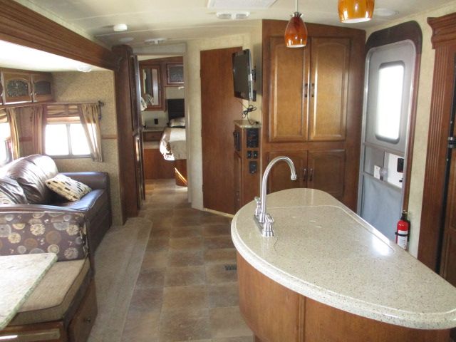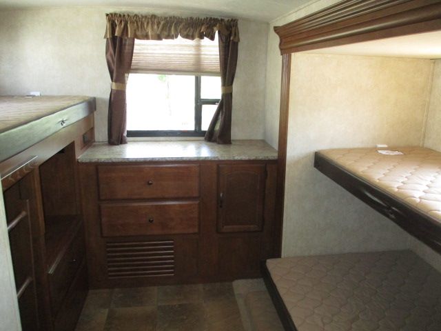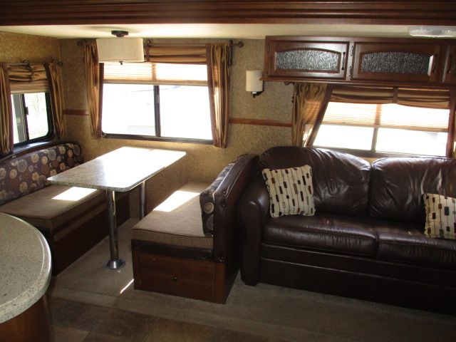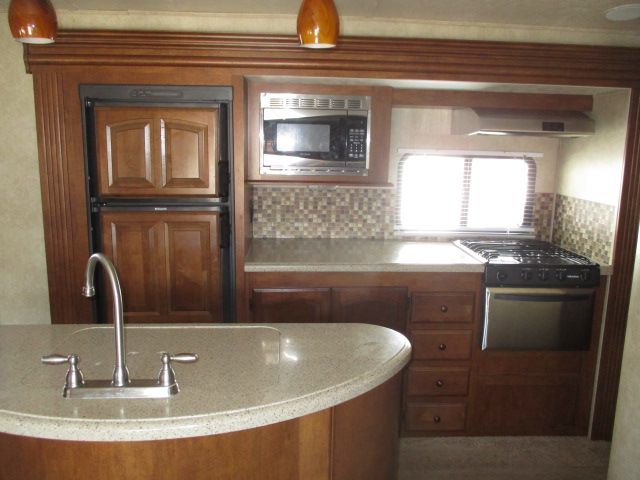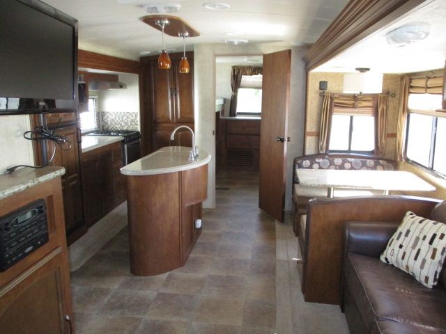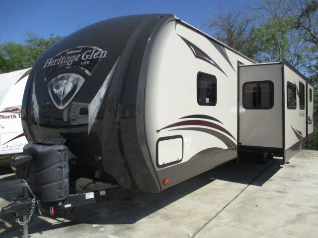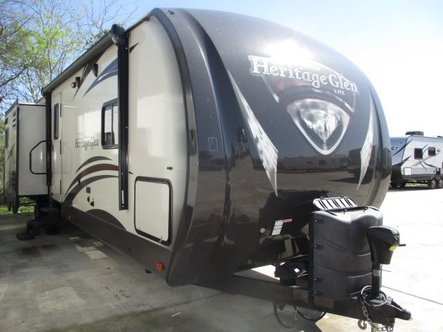 This 2014 Heritage Glen Lite has an Electric Tongue Jack, 3 Slide-outs, 1 Ducted Air Conditioner, Double Door Gas/110V Dometic Refrigerator, Automatic Main Awning, Outside Speakers, TV, DVD Player, Outdoor Kitchen, Microwave, 3 Burner Range, Oven. Enjoy those family vacations with all the comforts of home. Let's go RVing!