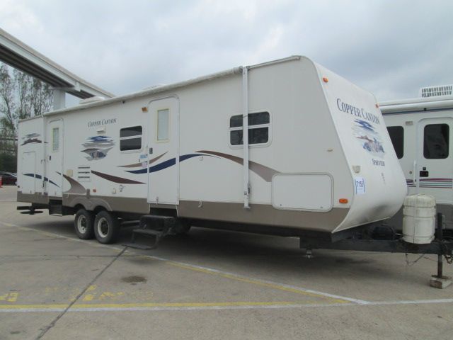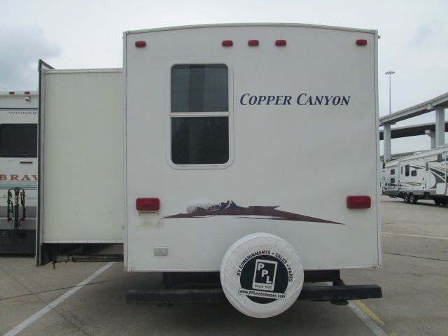 This 2006 Copper Canyon has a nice floor plan with a bunkroom thats perfect for the kids. It has a Trundle bed and desk. Sleeps up to 10.Options include....2 Slide-outs, 1 Ducted Air Conditioner, Double Door Gas/110V Refrigerator, Main Awning, DVD Player, Microwave, 3 Burner Range and Oven. Plenty of storage. Gather the family and head out to your favorite spot. Go CAMPing!